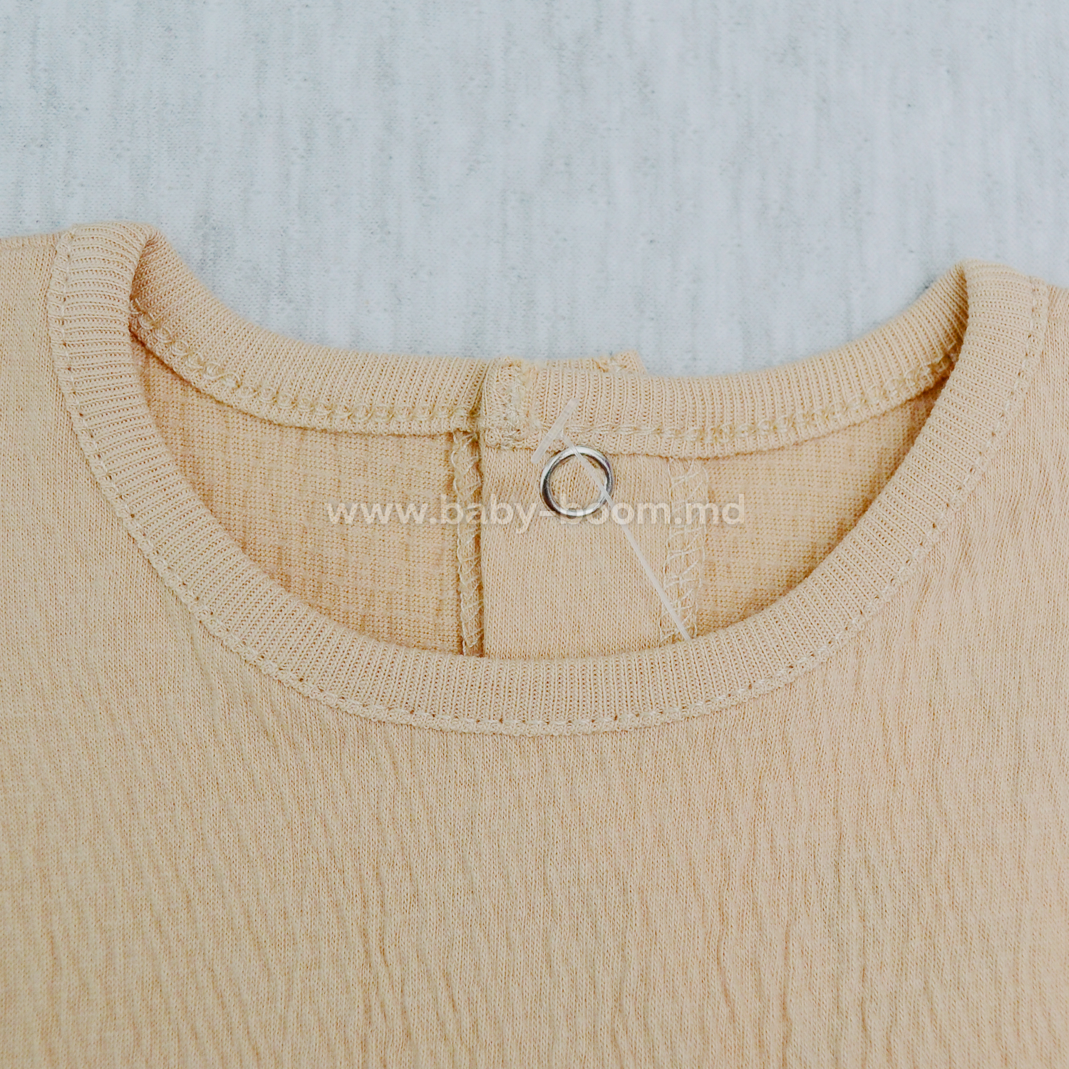 Боди для девочек выглядит стильно и удобно одевается благодаря застежке на горловине.