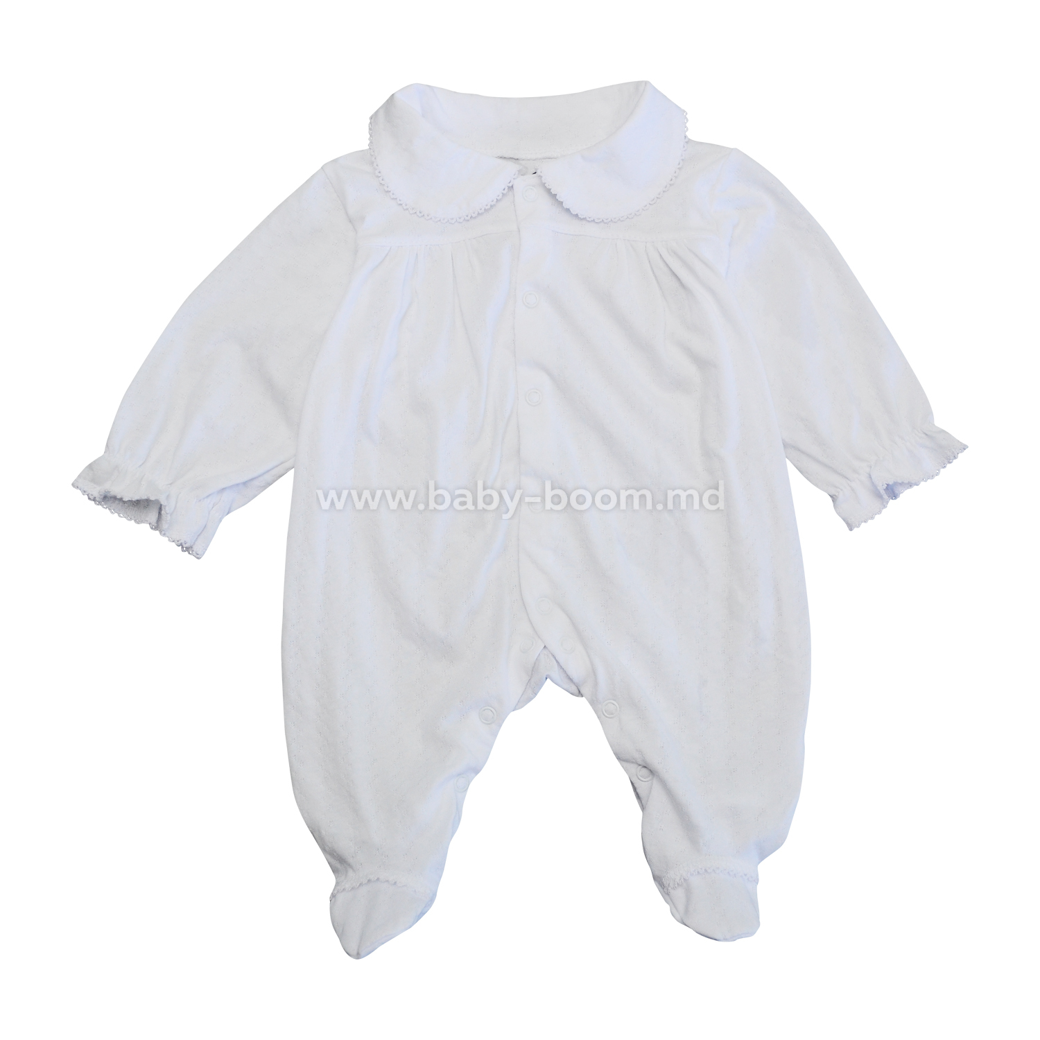 Комбинезон с воротником. Благодаря жаккардовой фактуре трикотажа комбинезон смотрится нарядно. Трикотаж легкий, мягкий и приятный на ощупь. Комбинезон подойдет к любому праздничному событию - выписке из роддома, дню рождения, крестину и т.д. Состав комбинезона 100% хлопок.