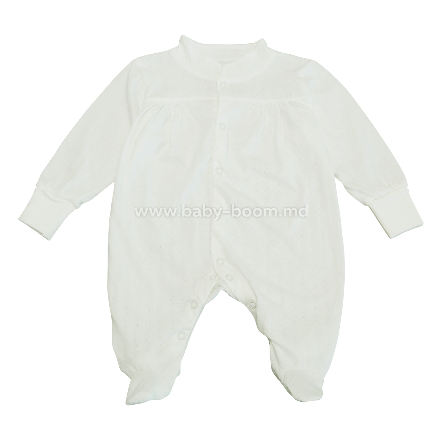 Комбинезон с воротником стойка, с манжетами "антицарапка". Благодаря жаккардовой фактуре трикотажа комбинезон смотрится нарядно. Трикотаж легкий, мягкий и приятный на ощупь. Комбинезон подойдет к любому праздничному событию - выписке из роддома, дню рождения, крестину и т.д. Состав комбинезона 100% хлопок.