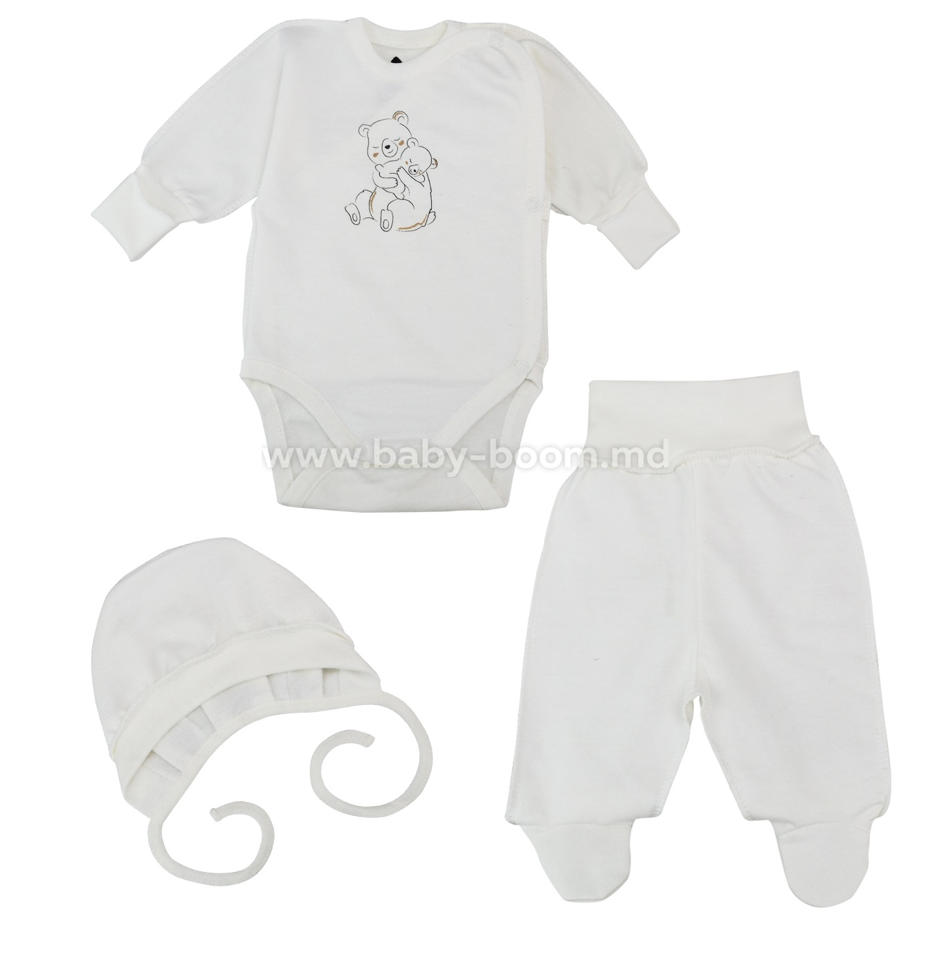 - Комплектация: Боди, ползунки с закрытыми ножками, чепчик.