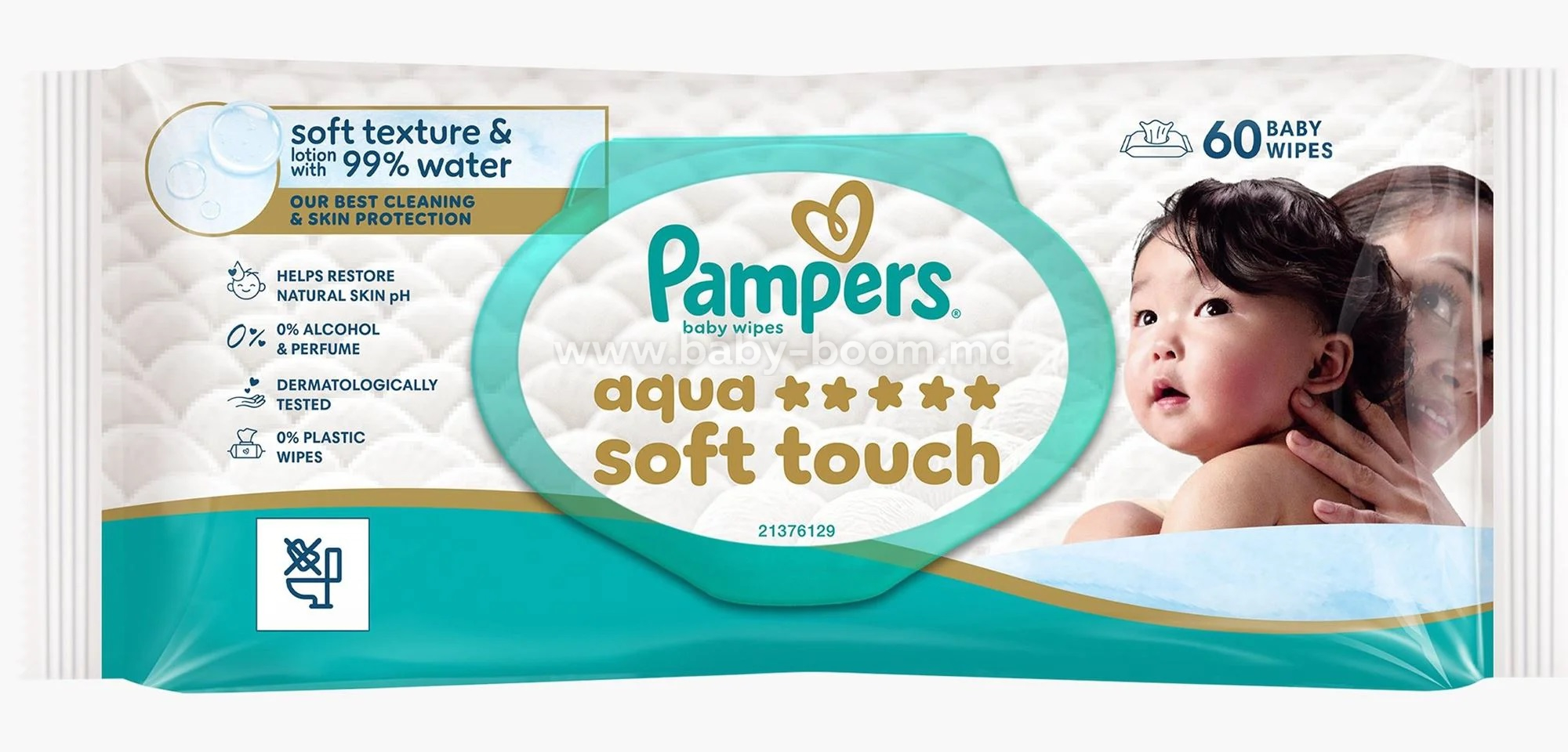 Обеспечьте самую бережную очистку и защиту нежной кожи вашего малыша с салфетками Pampers Aqua Soft Touch. Специальная формула, состоящая на 99% из чистейшей воды, идеально подходит для чувствительной кожи новорожденных, обеспечивая уход на уровне премиум-класса.