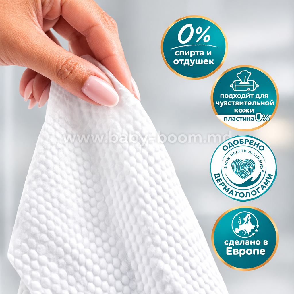 • 0% спирта и отдушек: Не содержат спирта, парфюмерных композиций и пластика, что делает их абсолютно безопасными с первого дня жизни.