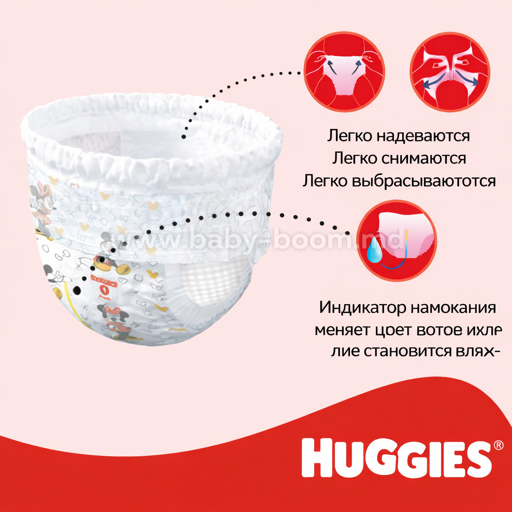 Удобный индикатор влаги подсказывает маме и папе, когда пора сменить трусики. Их легко надевать и снимать даже во время движения, чтобы малыш мог продолжать активно познавать мир.