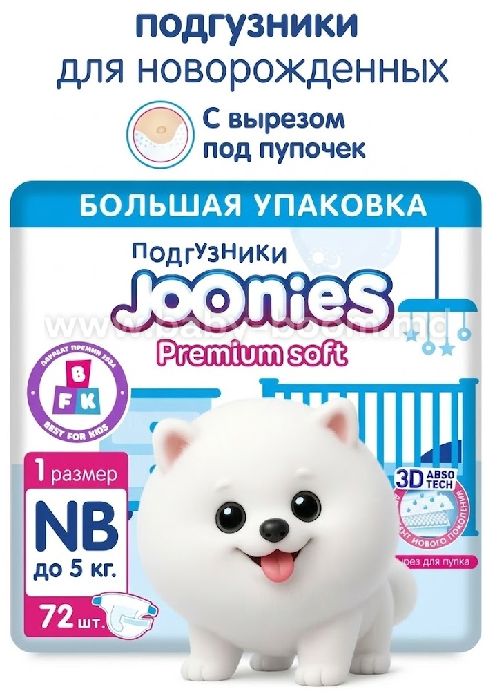 Joonies Premium Soft Подгузники NB (0-5 кг) 72 шт.
