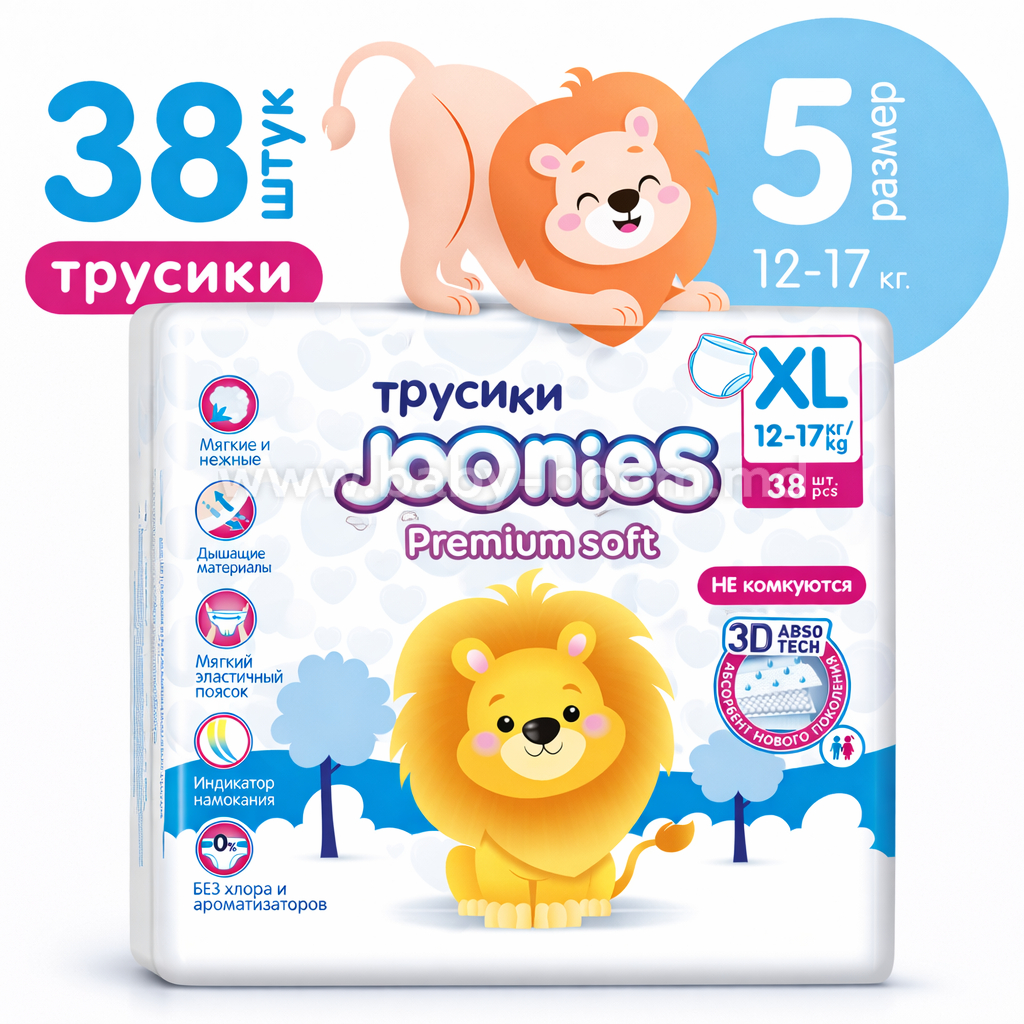 Joonies Premium Soft Подгузники-трусики XL (12-17 кг) 38 шт.