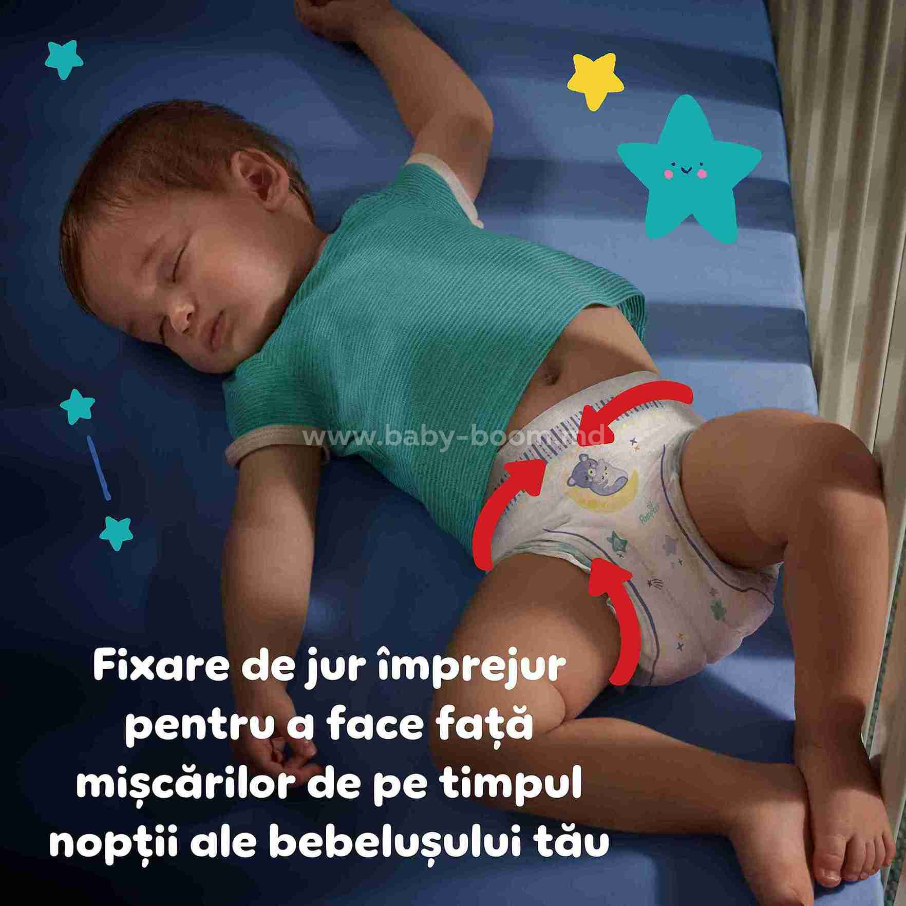 Ночные подгузники Pampers обеспечивают надежную защиту на протяжении всей ночи благодаря усовершенствованному внутреннему слою, который мгновенно впитывает влагу и сохраняет сухость до 12 часов. Это идеальное решение для комфортного сна малыша и спокойной ночи для родителей.