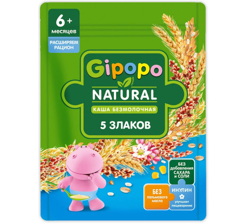 Каша безмолочная мультизлаковая из 5 злаков GIPOPO оптимально подходит для постепенного знакомства малыша с новыми сочетаниями. В ее состав входят несколько зерновых культур, они дают энергию и всё необходимое для роста и развития.