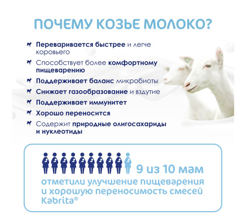 Адаптированная смесь Kabrita на натуральном козьем молоке для комфортного пищеварения.