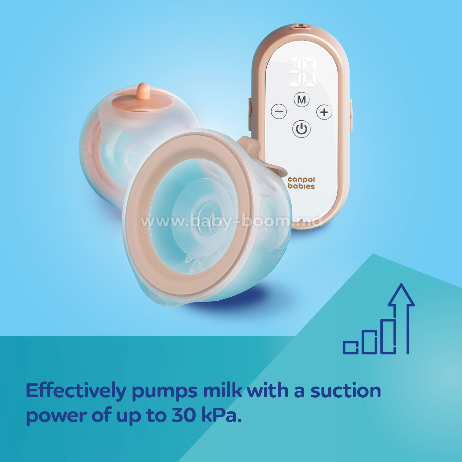 • Эффективность и удобство Молокоотсос эффективно сцеживает грудное молоко благодаря силе всасывания до 30 кПа. Ультралегкие корпуса делают его удобным для ношения даже с большой грудью, а небольшой пульт управления можно легко поместить в карман. Дополнительный ремешок позволяет повесить устройство на шею или пояс брюк, что придает комфорт при ежедневном использовании. Устройство работает очень тихо – максимум до 50 децибелов в самом интенсивном режиме.*