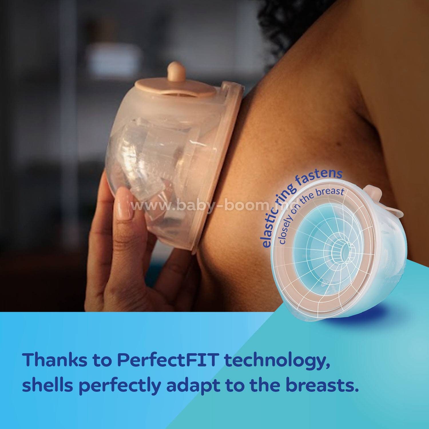 • Технология PerfectFIT Корпуса идеально прилегают к груди благодаря технологии PerfectFIT. Эластичная оболочка плотно облегает грудь для эффективного сцеживания, а вентиляционное отверстие, расположенное вверху сбоку, минимизирует риск протекания при движении или наклонах. Контейнеры емкостью 180 мл позволяют сцедить до 360 мл грудного молока за один раз.