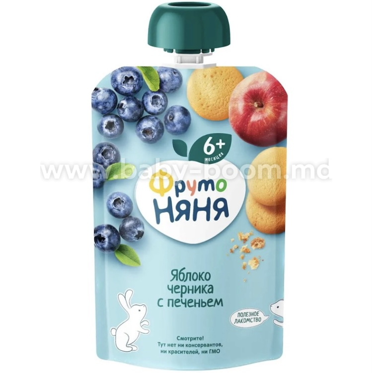 Фруктовое пюре «ФрутоНяня» Яблоко, черника, печенье в мягкой упаковке — это вкусный и полезный перекус, который удобно брать с собой, а яркая мягкая упаковка привлечёт внимание вашего малыша и позволит ему есть самостоятельно. Спелая черника, отборные яблоки и специальное детское печенье обеспечат организм вашего малыша природной пользой и энергией для гармоничного роста!