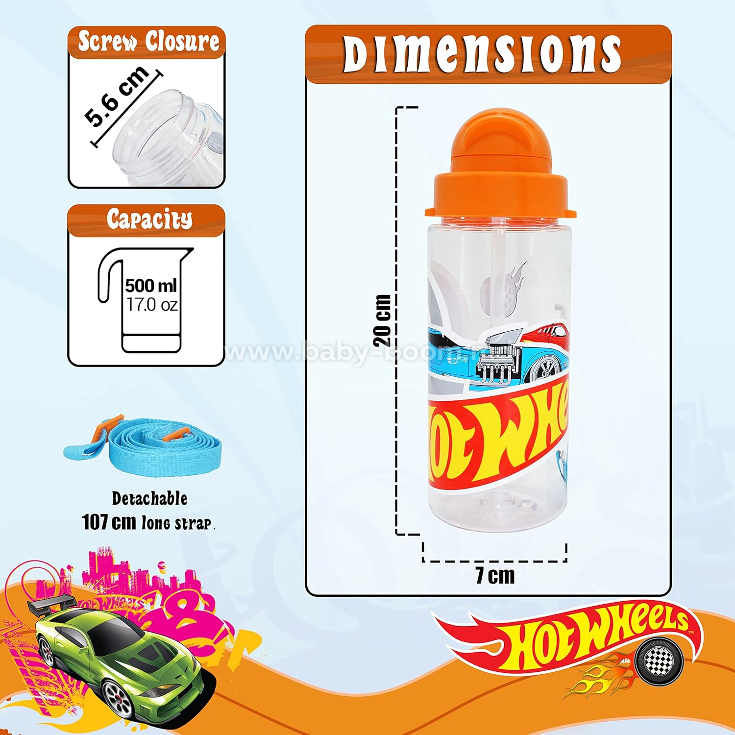 Kids Licensing HW00011 Бутылка тритановая с ремешком "Hot Wheels" (500 мл)