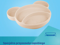 Canpol 51/401 Тарелка силиконовая "Мишка" на присоске с тремя отделами (500 мл) кремовый