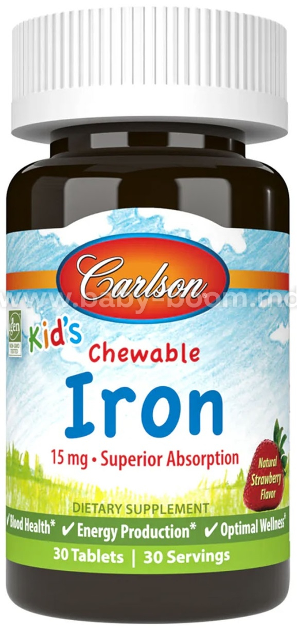 Carlson Железо жевательные конфеты для детей "Kids Chewable Iron 15 mg" (30 шт.) клубника