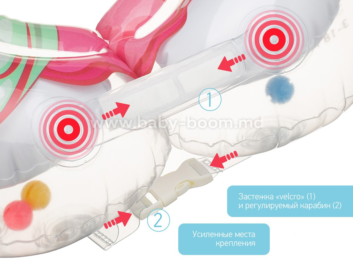 Две удобные застежки обеспечивают быструю и простую фиксацию круга во время купания.