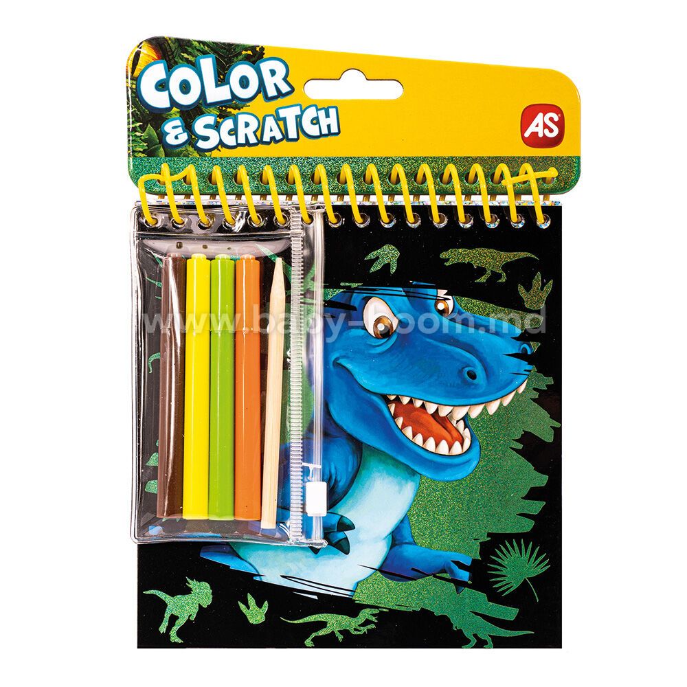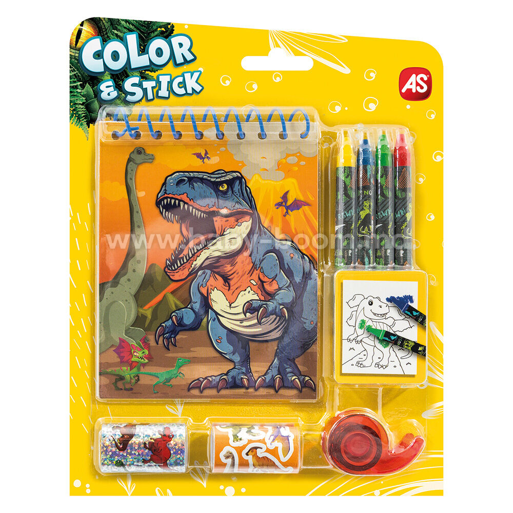Карманный набор для рисования AS с дизайном «Динозавры», состоящий из 4 различных предметов.
