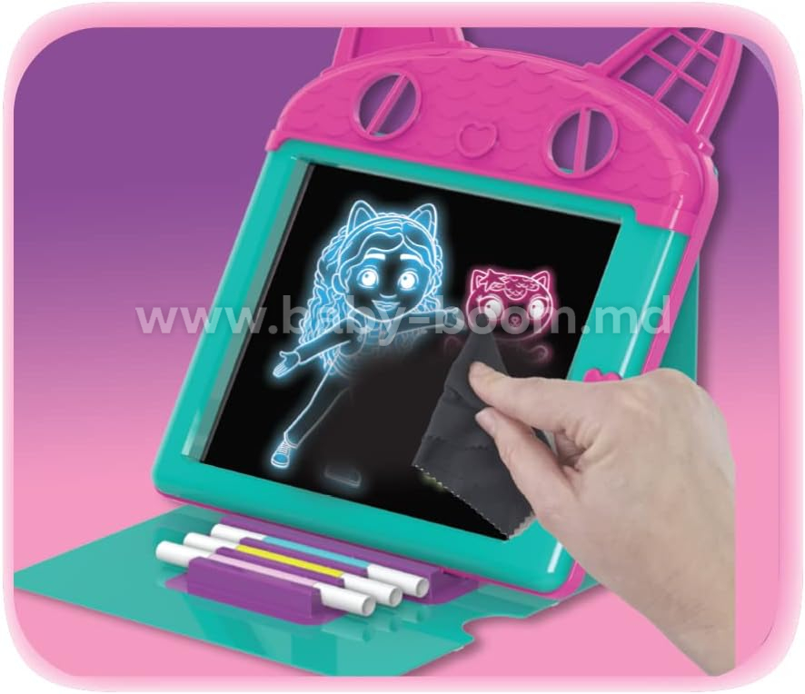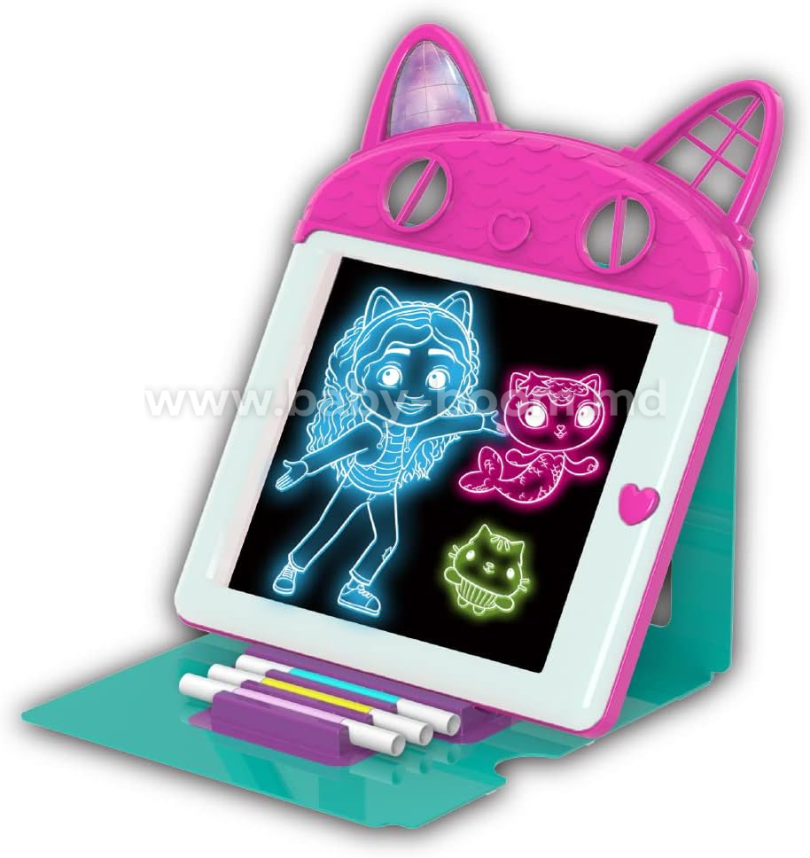 Неоновый планшет, Gabby’s Dollhouse ,создан для яркого и увлекательного рисования, которое превращает творчество в настоящую игру. Светящиеся линии делают рисунки эффектными, а процесс рисования помогает ребёнку развивать воображение, фантазию и интерес к творческим занятиям вместе с любимыми персонажами.
