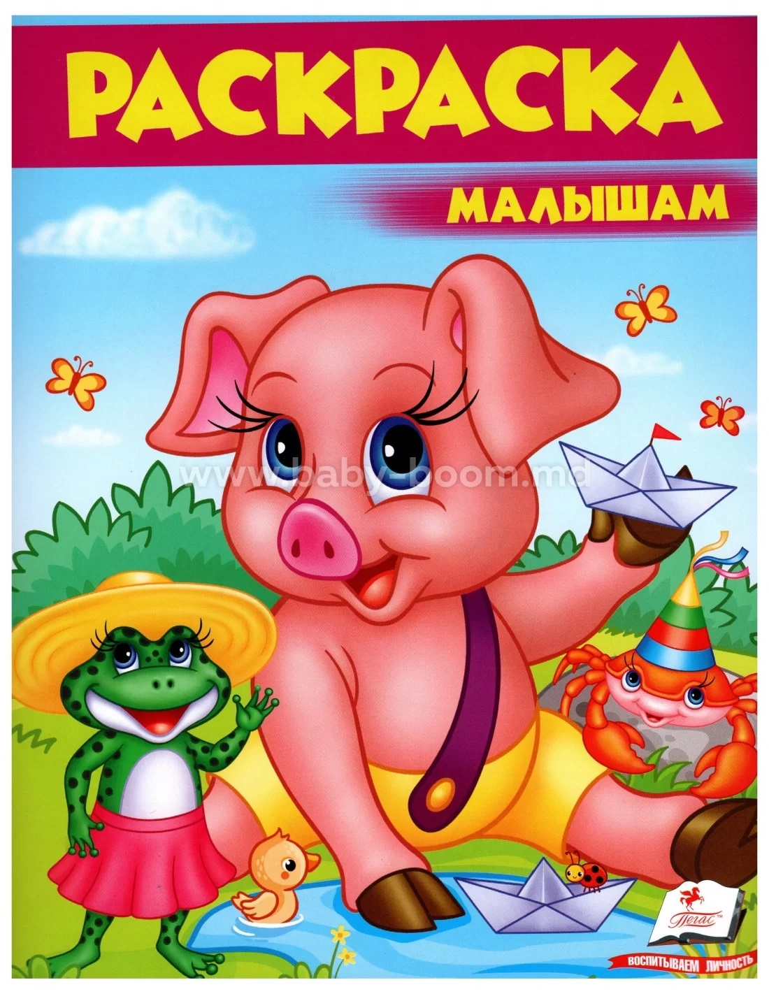 Особенности: Крупные контурные рисунки животных (поросенок, коровка, овечка и другие) без мелких деталей, что удобно для первых занятий рисованием.