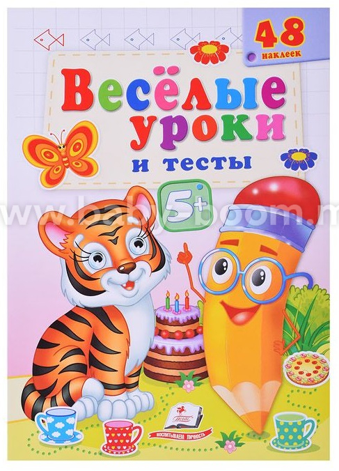 Это развивающая книга «Веселые уроки и тесты 5+ (тигр)» от издательства Пегас (Украина). Пособие предназначено для подготовки детей старшего дошкольного возраста к школе и развития ключевых когнитивных навыков.