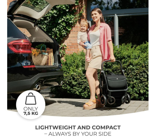 Коляска Apino очень легкая – его вес всего 7,5 кг, что делает его идеальным для динамичного образа жизни. Вы можете легко поднять его по лестнице, даже держа малыша в другой руке. Все, что вам нужно, — это одна рука, чтобы сложить его и сесть в общественный транспорт или положить в багажник автомобиля.