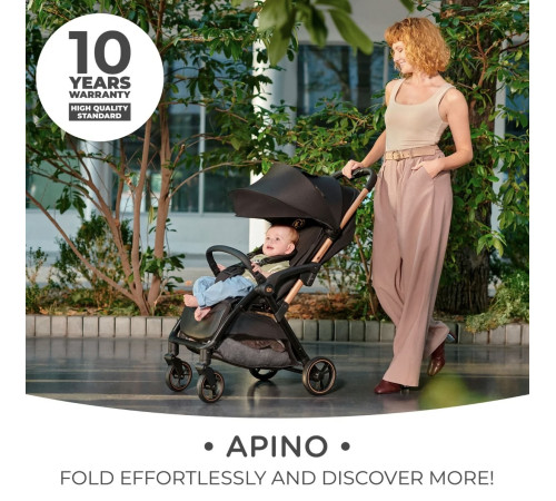 Apino – коляска, идеальная на каждый день и для поездок. Он легкий, им очень легко маневрировать и управлять. Его легко сложить, а устойчивые к проколам колеса защитят вас от неприятных сюрпризов в дороге.
