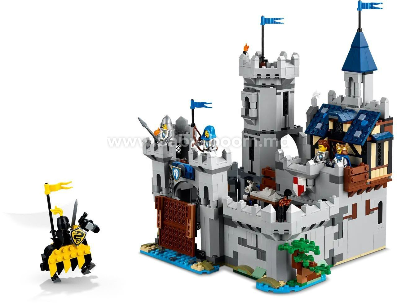 Развлекайтесь с детьми, создавая средневековые сцены с набором LEGO® Creator 3 в 1 «Средневековый замок с лошадьми и рыцарями» (31168). Этот детализированный средневековый замок открывается сзади и включает в себя множество интересных деталей, включая подъемный мост, большой зал, конюшню, кузницу, потайной сундук с сокровищами, королевскую спальню, письменный зал и две башни с террасами.