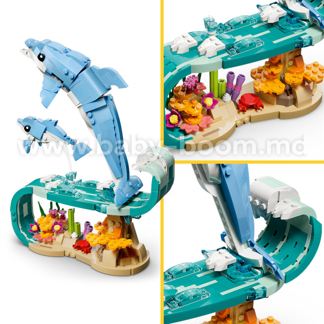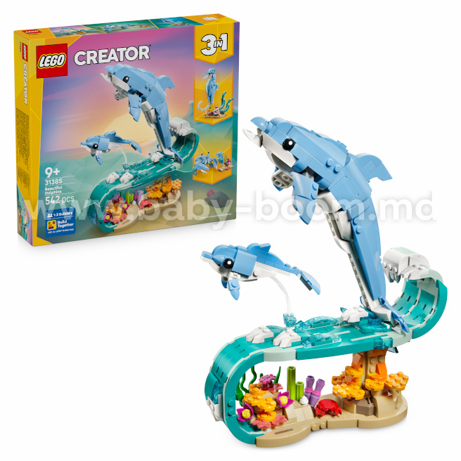 Набор LEGO® Creator 3 в 1 «Морские животные: прекрасные дельфины» (31385) позволяет детям от 9 лет разыгрывать увлекательные истории. Этот набор с фигурками морских животных для девочек и мальчиков предлагает 3 различных варианта сборки из одного и того же набора кубиков.