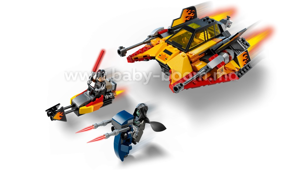 Этот набор для сборки также включает в себя первые минифигурки LEGO Star Wars, включая Сига Гриблинга, Дарта Дэва и Солитуса. Каждый персонаж вооружён световым мечом, включая два цепных световых меча Солитуса. У Солитуса также есть крутой боевой автомобиль STAP. Набор содержит 349 деталей.