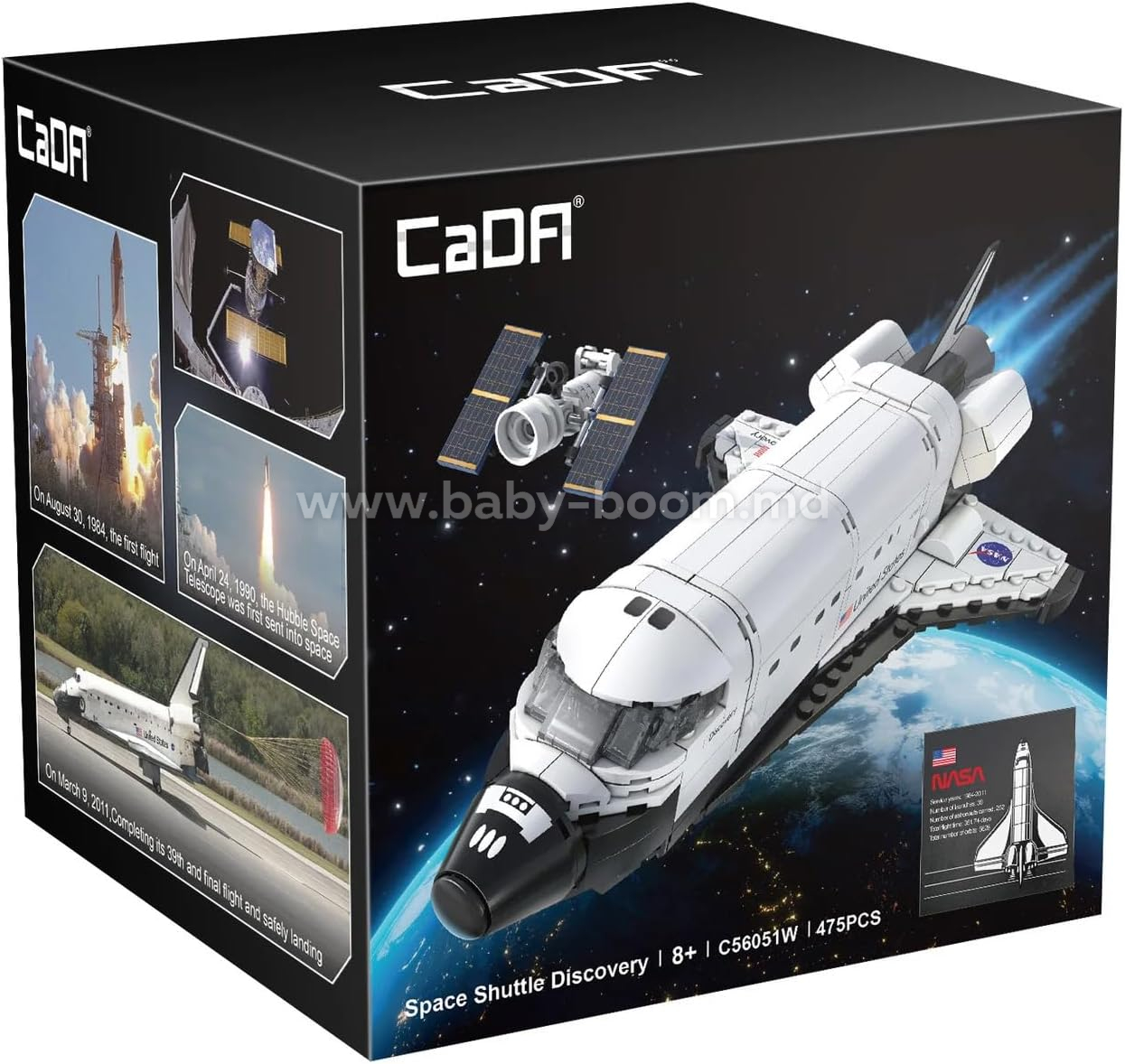 Набор CaDA NASA Space Shuttle Discovery представляет собой сложную и детализированную модель, состоящую из 475 деталей. Этот набор с поразительной точностью передает суть культового космического челнока. Челнок построен на основании в виде «тенсегрити», что придает ему уникальный и визуально впечатляющий вид.