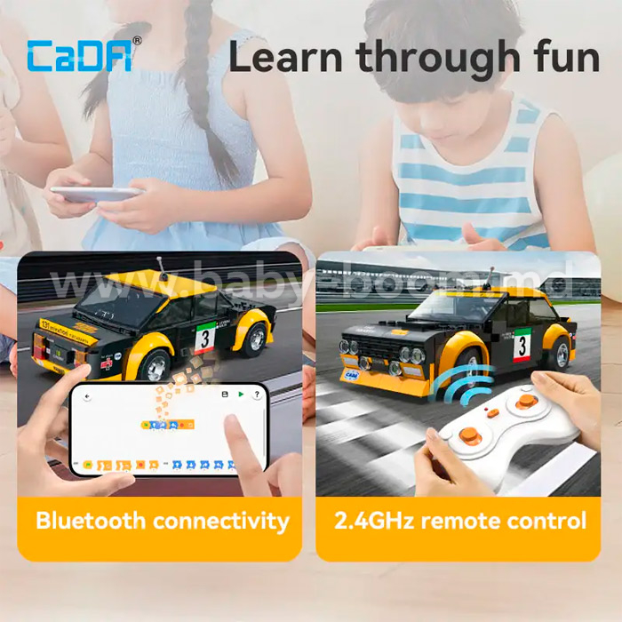 Несколько режимов управления со смартфона: дистанционное управление, режим гироскопа, режим пути по линии и программирование маршрута. Программирование на языке подобному Scratch* в официальном приложении CaDA.(Скретч — язык программирования, созданный для детей и подростков.) Дальность действия пульта около 25 метров.