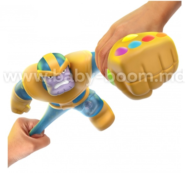 Супер-большой и супер-мягкий! Как и у других игрушек Heroes of Goo Jit Zu, у Таноса уникальное тело, наполненное слизью, но теперь он огромного роста - 20 см! Герои Goo Jit Zu - это самые мягкие и эластичные герои на свете! Сожмите его тело и увидите, как его уникальный наполнитель растягивается и сминается! Большое и прочное, тянущееся тело Таноса может растягиваться в 3 раза, а затем возвращаться к своей первоначальной форме!