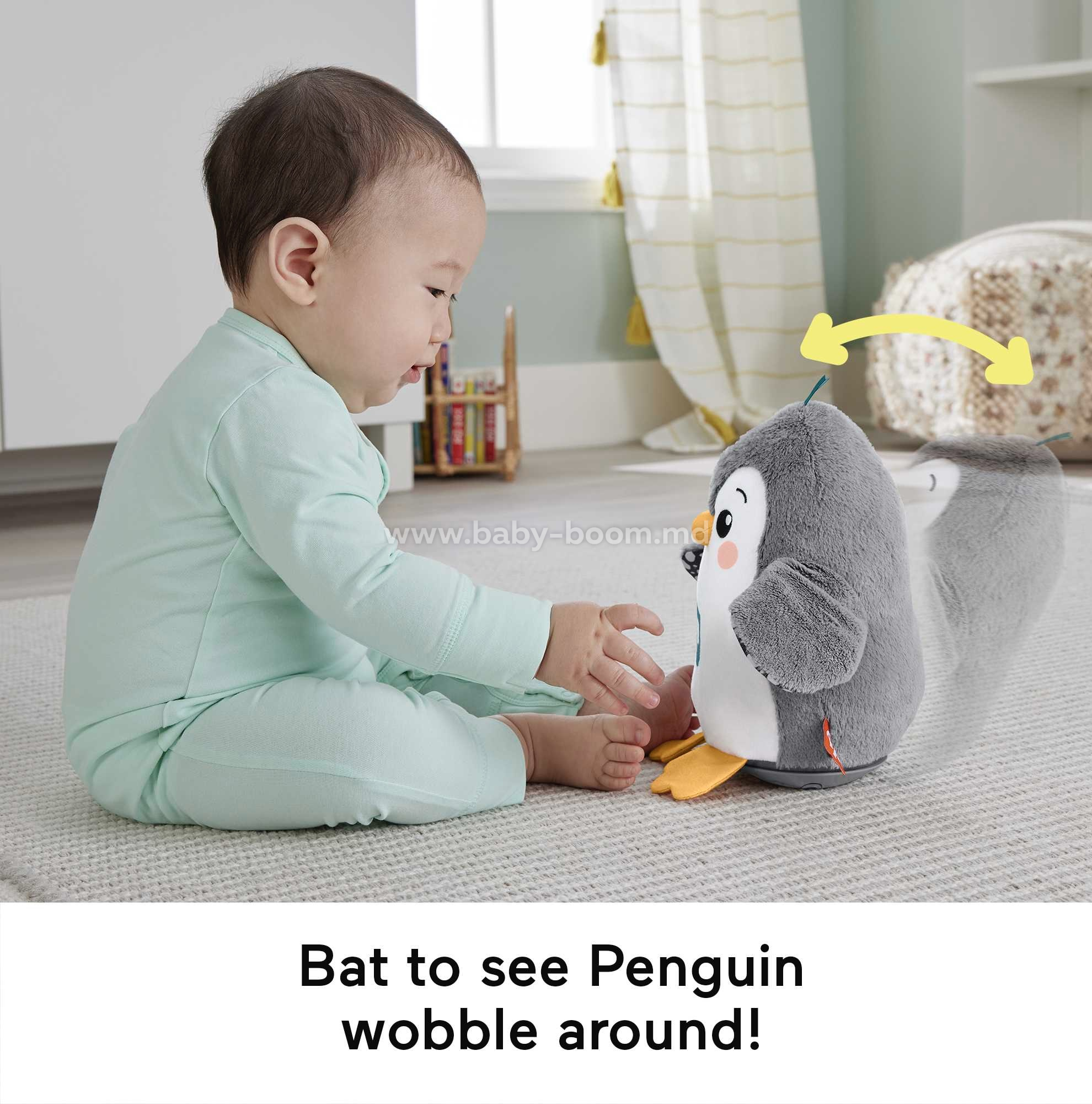 Время, проведенное на животике — это приятное времяпрепровождение с плюшевой музыкальной игрушкой Fisher-Price Flap & Wobble Penguin. Эта игрушка для отдыха с дружелюбной мордочкой реагирует на прикосновения вашего ребенка веселыми хлопающими движениями и музыкой. По мере того, как ваш ребенок растет, игрушка в форме пингвина побуждает вашего малыша сидеть и касаться своего приятеля, чтобы он пел веселые мелодии и качался, хлопая крыльями. Контрастные черно-белые узоры, мягкая плюшевая ткань, мятые ножки и игривая музыка способствуют развитию у новорожденного зрительных, тактильных и слуховых ощущений.
