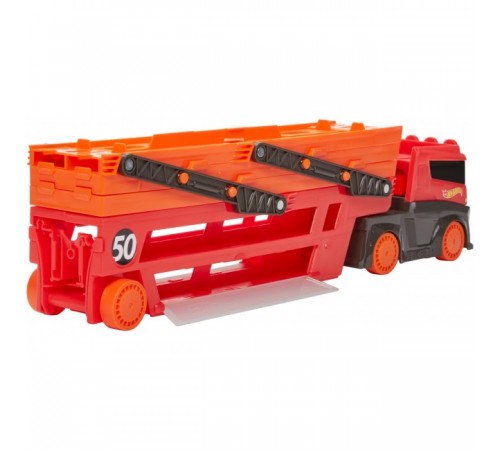 В задней части грузовика есть рампа, которая опускается для соединения грузовика с другими наборами Hot Wheels. Кабина транспортера открывается для парковки еще двух машинок, а прозрачная боковая панель откидывается для удобного и компактного хранения любимых машинок. На всех уровнях, а также в задней части грузовика есть специальные крепления для присоединения грузовика к другим наборам Hot Wheels.