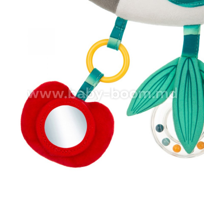 - Различные сенсорные элементы – Игрушка оснащена зеркальцем в форме яблока, которое способствует развитию зрения, а также погремушкой и хватательными элементами, которые помогают развивать мелкую моторику.