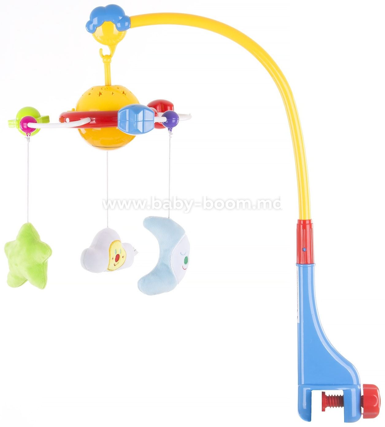 Этот музыкальный мобиль подойдет для новорожденных. Игрушка проецирует картинки на потолок, чтобы развлечь малыша. Нежные мелодии помогают малышу легче заснуть. Специальное успокаивающее движение мобиля привлекает внимание ребенка и удерживает его. Каждая плюшевая игрушка танцует над головой, малышу понравится наблюдать, как кружатся эти персонажи. Эта игрушка способствует развитию зрения и слуха.