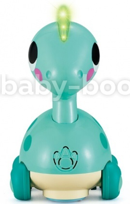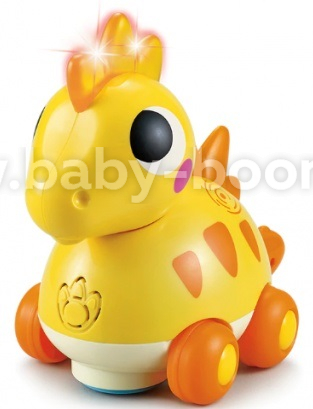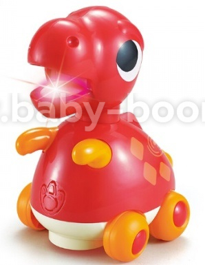 Яркая игрушка в виде забавного динозавра. Если дотронуться сзади, динозавр поедет и заиграет музыка. Также можно возить игрушку как каталку. Есть мелодии и звуковые эффекты, без слов. Игрушка соответствует стандартам качества и безопасности: EN71 (европейский), ASTM (американский).