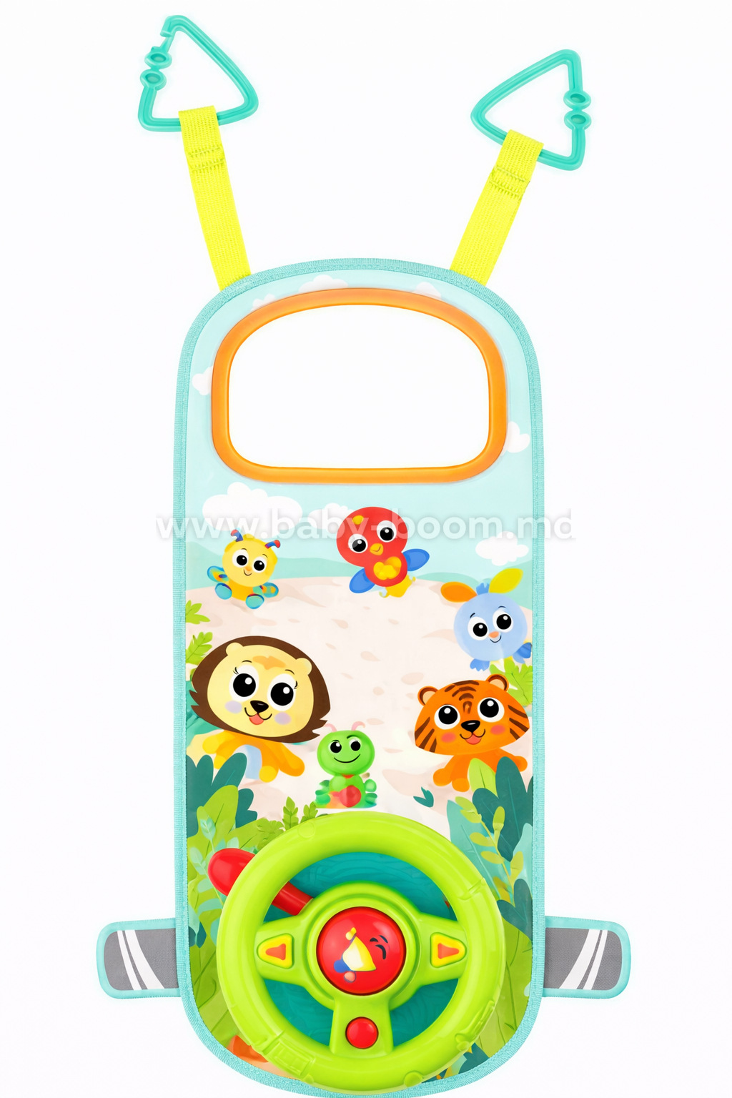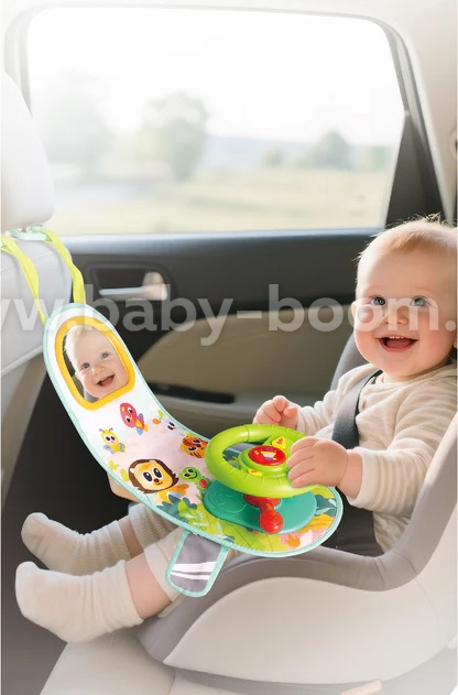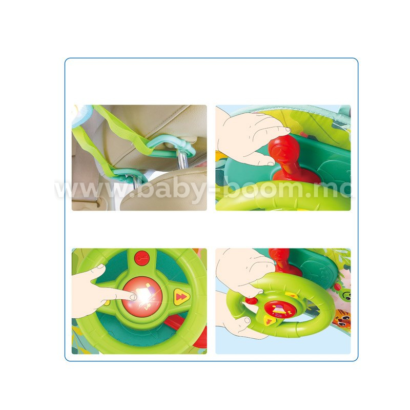 Музыкальный руль с очень удобной текстильной подвеской прекрасно подойдет для маленьких водителей,.
