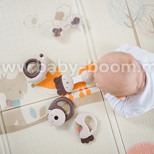 СТИМУЛИРУЮЩИЕ ЗВУКИ Когда вы трясете погремушку, она издает нежные звуки, которые привлекают внимание малыша и развивают его слух.