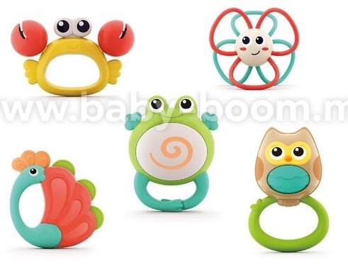 Отличный детский набор с красочными и красивыми погремушками в виде разных животных. Они изготовлены из безвредных материалов, к тому же удобны и их легко держать маленькими ручками. Каждая игрушка оснащена прорезинеными деталями, которые можно грызть. Прорезыватели успокаивают зуд десен, способствуют облегчению в период роста первых зубов и стимулируют правильное развитие прикуса.
