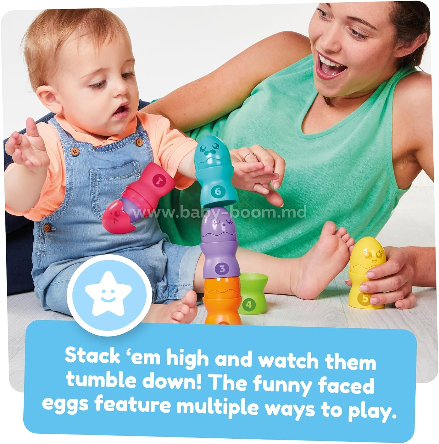 Увлекательная игра с сортировкой развлечет любого малыша: каждое яйцо имеет стержень разной формы с соответствующей прорезью в коробке для яиц, а соединение скорлупок вместе также позволяет попрактиковаться в подборе цветов.