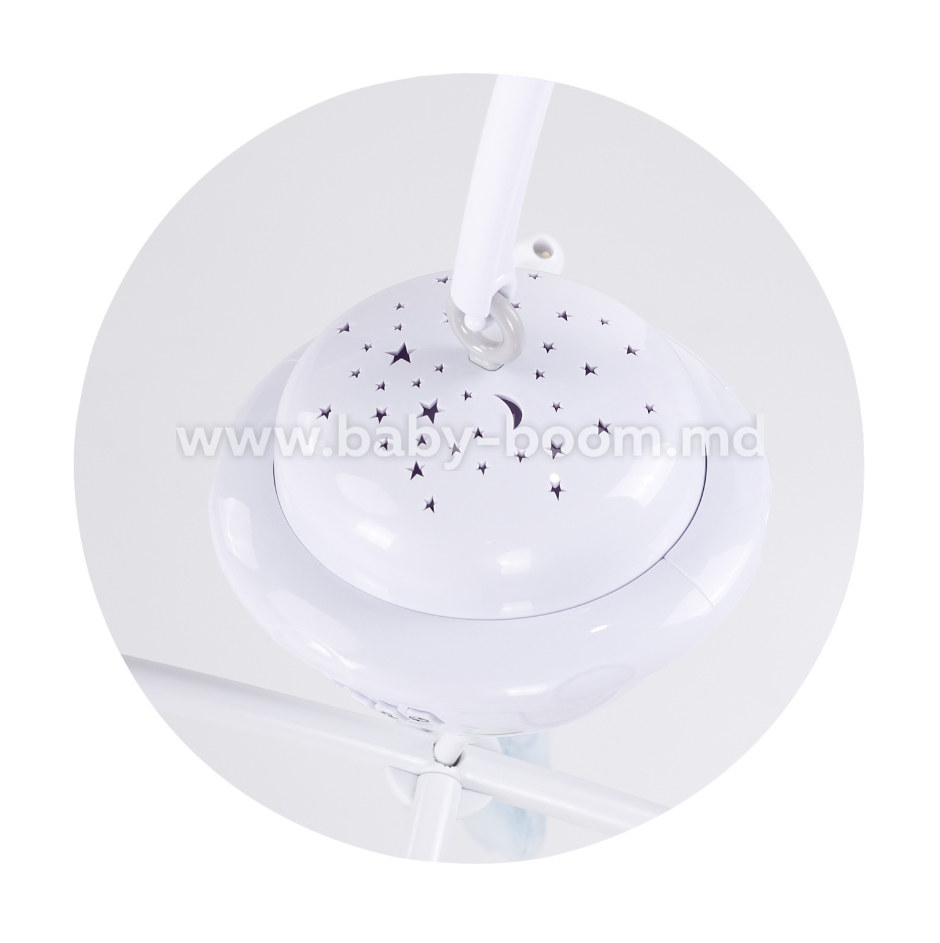 Этот музыкальный мобиль подходит для новорожденных. Нежные мелодии помогают малышу легче заснуть. Особое успокаивающее движение мобиля привлекает внимание малыша и удерживает его. Игрушка проецирует различные цвета и фигуры, чтобы успокоить ребенка. Каждая плюшевая игрушка танцует над головой, малышу понравится наблюдать за вращением этих персонажей. Эта игрушка способствует развитию зрения и слуха.