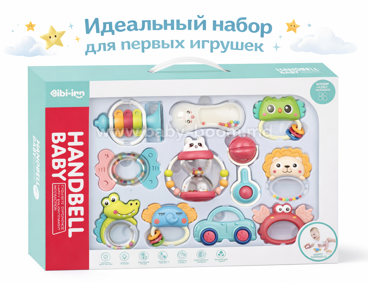 Набор из 11 предметов: погремушка и прорезыватель для зубов — разработан с учетом потребностей малышей и идеально подходит для стимуляции сенсорного развития ребенка в игровой и безопасной форме. В этом наборе вы найдете 11 различных предметов, предназначенных для облегчения процесса прорезывания зубов и обеспечения часов веселья и развлечения.
