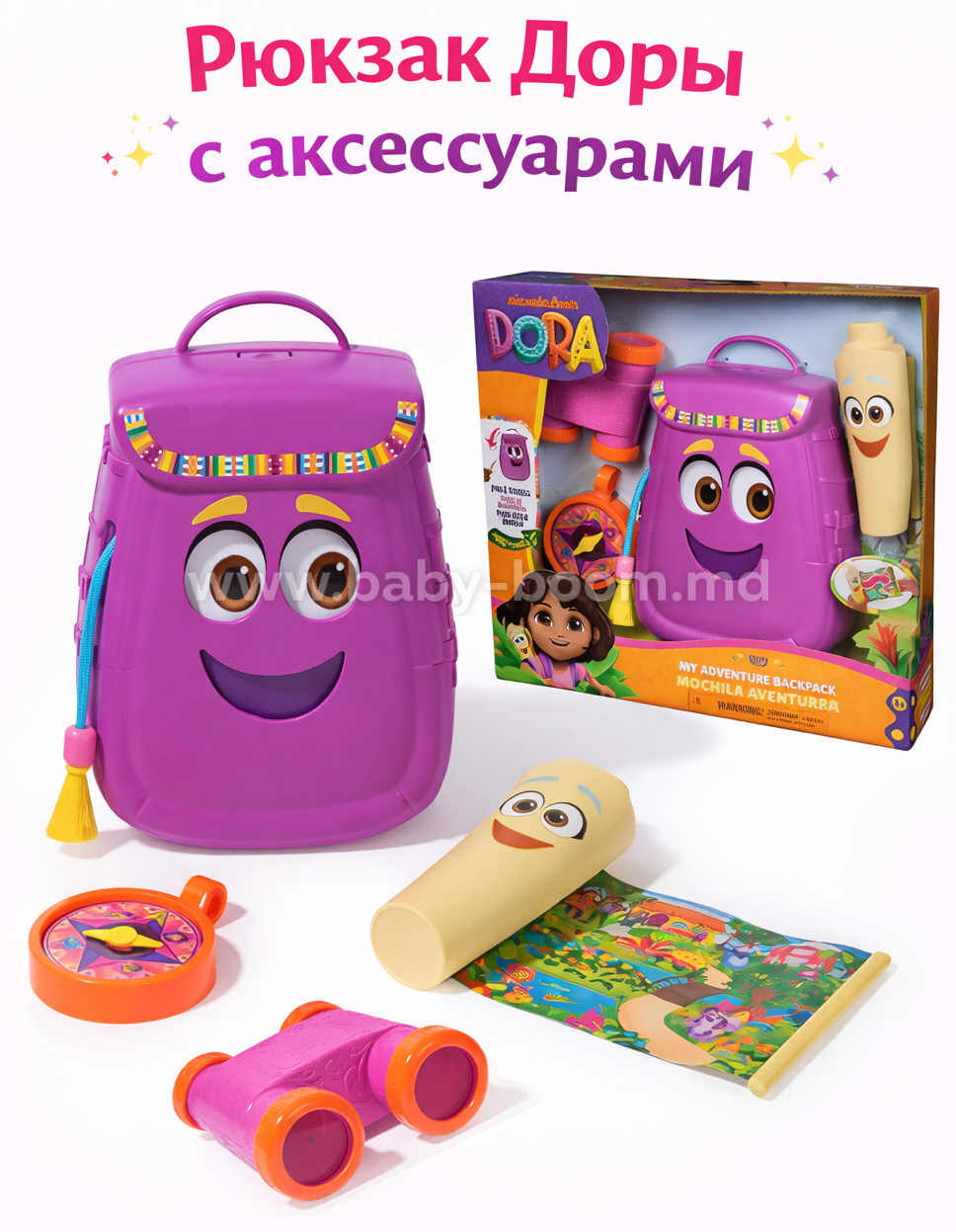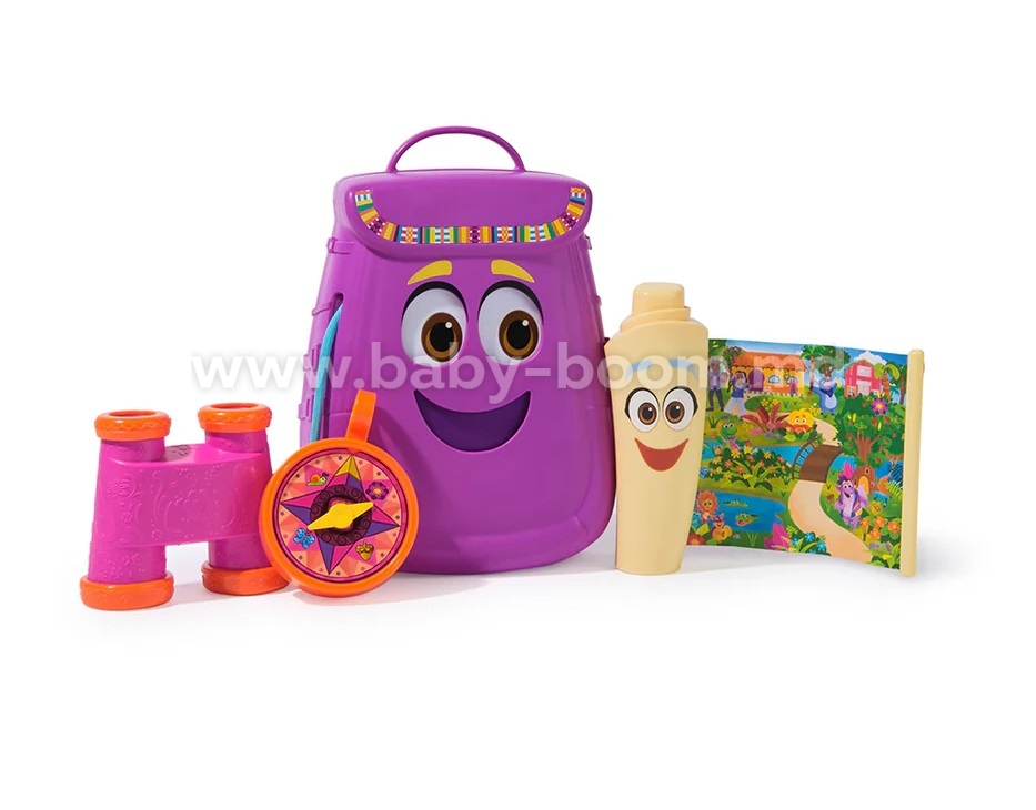 В набор также входят выдвижная карта, бинокль и компас для бесконечных игр в воображаемые приключения. Двусторонняя карта выдвигается и складывается для удобного доступа и хранения. Рюкзак также открывается и закрывается для удобного хранения игрушек и имеет регулируемые лямки для игр в дороге.