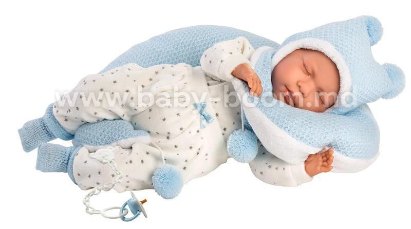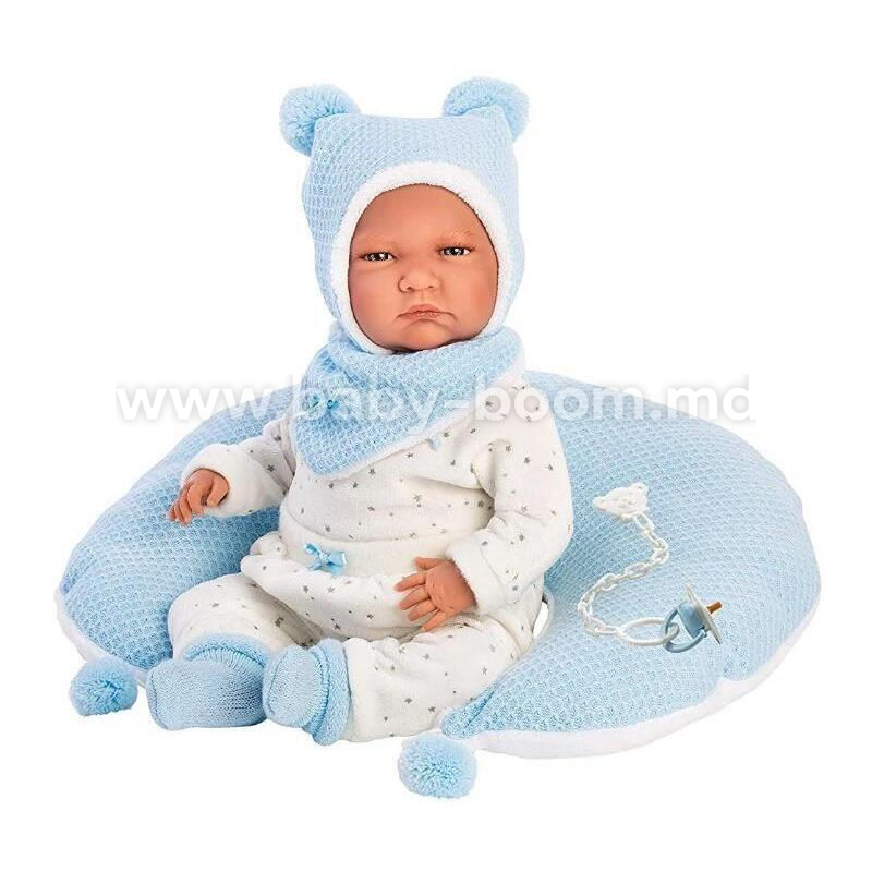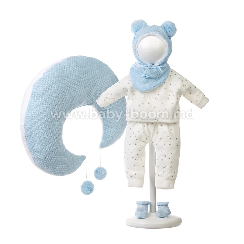 Комплект для младенца, включающий подушку для кормления Blue Moon, двухкомпонентную пижаму, нагрудник, шапочку и пинетки.
