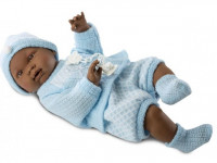 Куклы из последней коллекции испанской мануфактуры Llorens выглядят как настоящий ребенок и являются идеальной игрушкой для детей всех возрастов. Производитель позаботился о деталях натуралистического внешнего вида, таких как пол, складки и выражения лица, что делает этих кукол похожими на настоящего ребенка. Младенец высотой 45 см выполнен исключительно из тонкого, исключительно мягкого и приятного на ощупь винила. Куклу можно купать! Ручки и ноги подвижны. Кукла имеет темную кожу. Он носит трикотажный синий свитер с шортами. В комплект также входит милая шапочка с помпоном и носки. Кукла упакована в элегантную коробку, идеально подходящую для подарка.