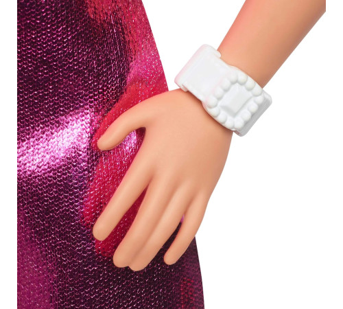 Эта Barbie «Модница» покоряет сердца изящным романтическим стилем! Она одета в яркое розовое мини-платье цвета металлик с вырезом-сердечком, которое выглядит гламурно и мило одновременно.