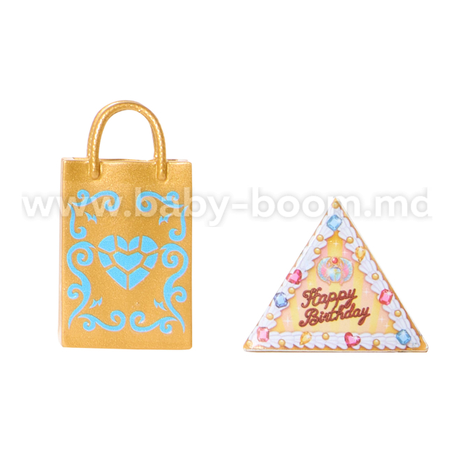 Наряд с прозрачными чёрными рукавами и золотыми лентами дополнен роскошной накладкой на юбку в виде золотых узоров, белой «глазурью», бирюзовой подкладкой и жемчужными деталями — всё выглядит так, будто создано из крема и драгоценностей.