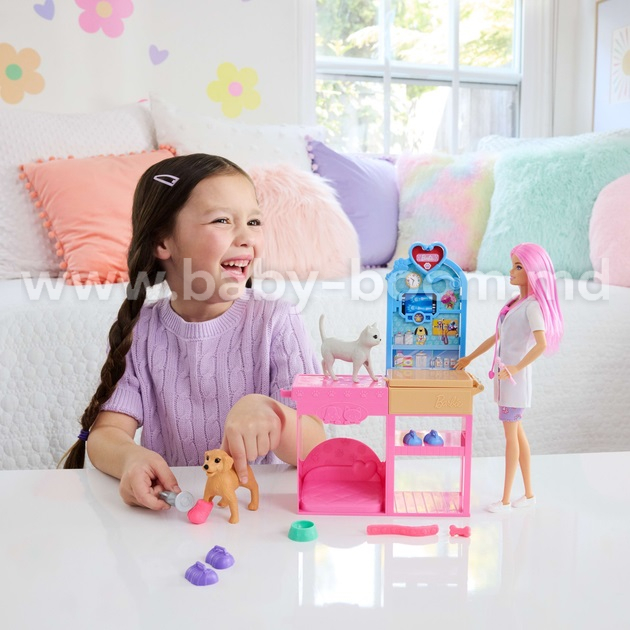 Откройте для себя мир заботы о животных с игровым набором Barbie® Fast Cast Veterinarian Clinic™! Играя с Барби, девочки представляют, кем они могут стать, а те, кто любит заботиться о своих пушистых друзьях, могут стать ветеринарами! В набор входят кукла Барби с розовыми волосами, два питомца, смотровой стол и ветеринарные аксессуары! Дети могут делать слепки для своих животных-пациентов с помощью реалистичной функции создания слепков для ног пациента и создавать повязки с помощью бинтового станка! Дети будут в восторге от возможности приводить своих друзей-животных в клинику и возвращать им здоровье! Кукла не может стоять одна. Цвета и украшения могут отличаться. Отличный подарок для детей от 4 лет.