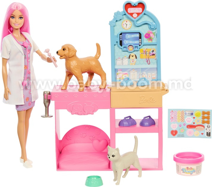 - Кукла и игровой набор Barbie® Fast Cast Veterinarian Clinic™ вдохновляют любителей животных на осуществление своей мечты стать ветеринаром. В набор входят смотровой стол, щенок, кот и более 10 предметов для увлекательной игры в профессиональную медицину!
