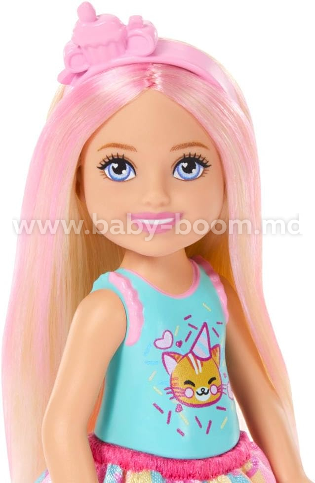 - Эта маленькая кукла Челси передает милое поздравительное сообщение, украшена розовыми прядями в светлых волосах, имеет праздничный образ и 4 тематических аксессуара!